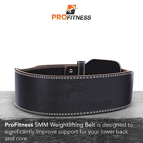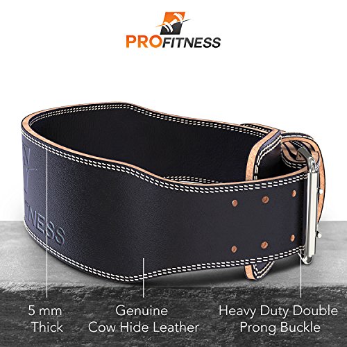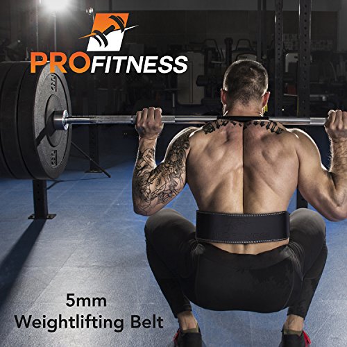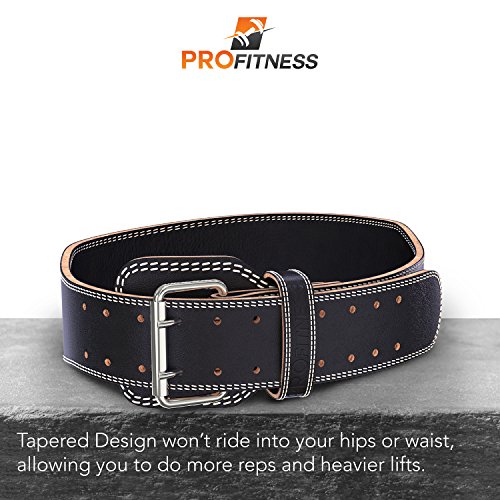 ProFitness Weight Lifting Belt (4 Inchs Wide) – Comfortable & Durable Pre Broken-in Genuine Leather – Great Lower Back & Lumbar Support for Squats, Deadlifts, Gym Workouts – for Men & Women